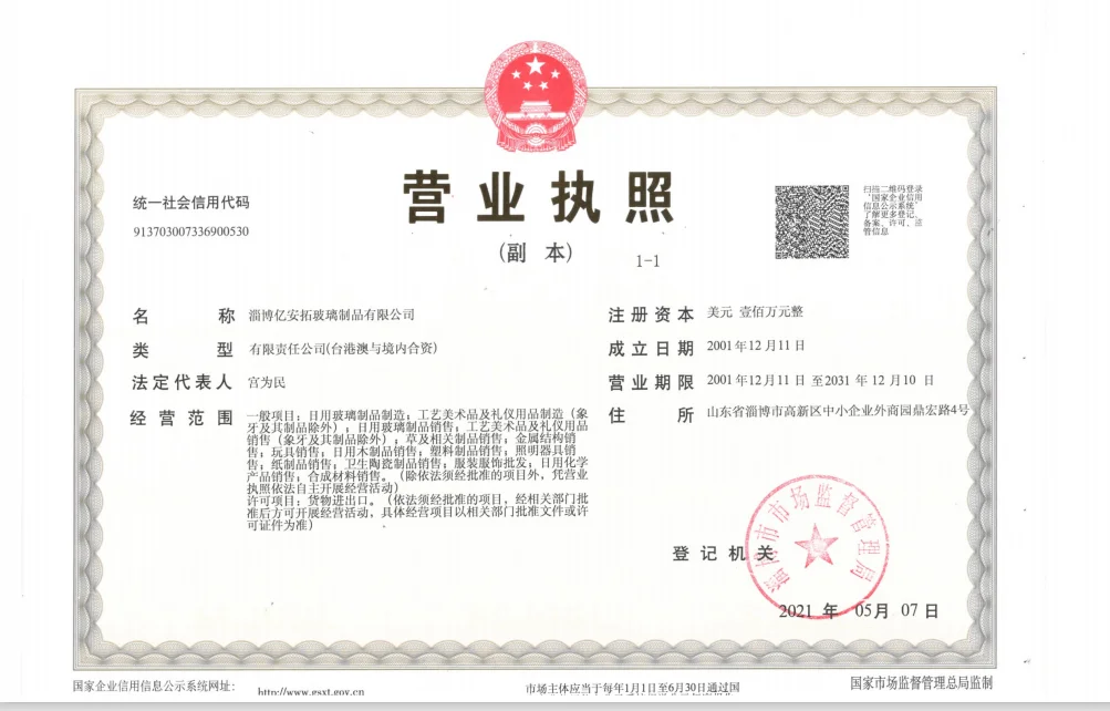 Company Name : Zibo Anto Glass Industry Co., Ltd.